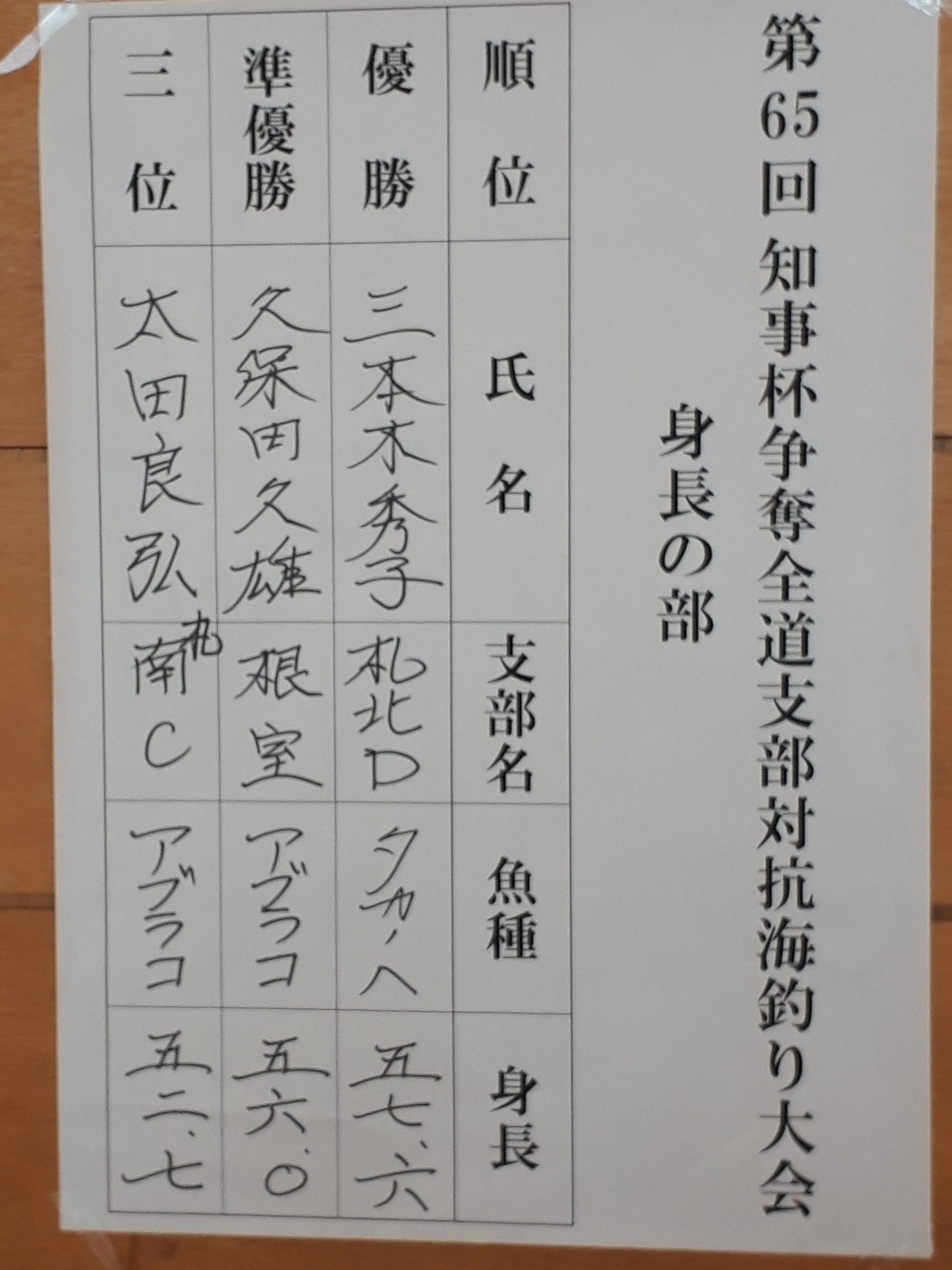 ベタなぎで逆に不安になるぐらいの中開催され、苦戦を強いられた会員もいましたが(注:管理人はその筆頭です(笑))、そこは名人会だな~とやっぱり思いました。さて結果です。